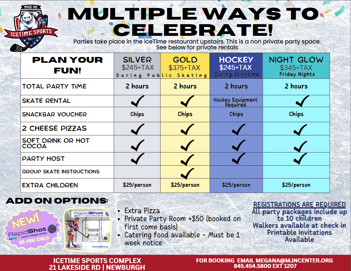 ASK ABOUT PRIVATE ICE RINK, HOCKEY & GLOW PARTY OPTIONS!